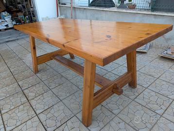 TAVOLO E PANCHE IN ABETE MASSELLO, MODELLO ALPI, IN PERFETTO STATO.