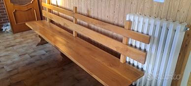 vendo splendido tavolo in legno di larice massello, con due panche. Adatto a tavernette, locali o grandi sale. In perfette condizioni. dimensioni 280x97x7 cm di spessore.