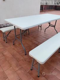 Tavolo e panche camping pieghevoli con struttura tubolare in acciaio (diametro 25mm).
