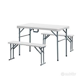 ✔️Trasportabile e Pieghevole: Set Tavolo e Panche cosi composto 1 tavolo e 2 Panche Sia il tavolo che le panche sono pieghevoli e facilmente trasportabili ma nello stesso tempo è un set robusto comodo e resistente grazie alla struttura in acciaio il tavolo Misura da aperto 113 x 71 x 71 Cm Le panche da aperte Misura 90 x 20 x 41 Cm - Una volta richiuso l'interno set misura 113 x 61 x 6 Cm il set è ideale per essere caricato in una qualsiasi auto e essere portato ovunque una volta aperto tavolo e panche garantiranno agli utilizzatori un utilizzo comodo e piacevole una volta richiusi sono una soluzione salvaspazio ottimale