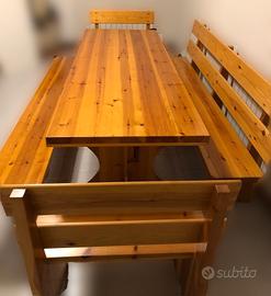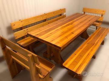 Vendo per rinnovo arredamento grande tavolo in legno massello corredato di quattro panche in ottimo stato ideale per taverna e giardino