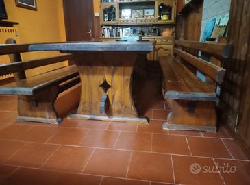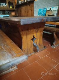 tavolo in legno massello. metri 2.97 lunghezza larghezza 96 cm spessore 5 cm 2 panche lunghe 3 metri con appoggio schiena