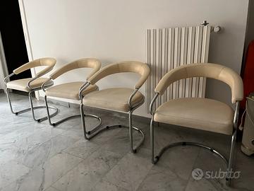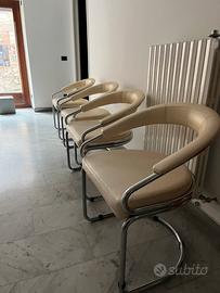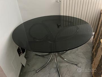 Tavolo diametro 120 in vetro fume’, supporto in tubolari cromati 4 poltroncine in ecopelle crema Pochissimo usati (provenienti da seconda casa al lago) Vendo anche separatamente Solo ritiro in sede