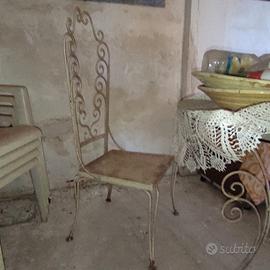 Tavolo rotondo con cristallo di diametro di circa 1,5 m. in ferro battuto artigianale con quattro sedie, da ritinteggiare ma in buono stato.