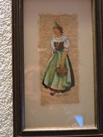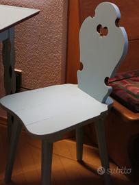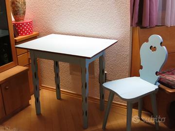 Offro : Tavolo e Sedia Tirolese, compreso due quadretti raffiguranti costumi Tirolesi, sedia e tavolo sono risalenti fine Ottocento, costruiti da