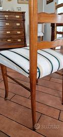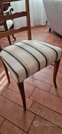 5 sedie rivestite con stoffa a righe.