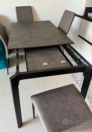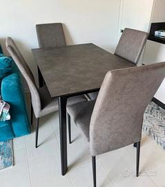 Tavolo dimensioni Lunghezza 120 cm estendibile 160 cm Larghezza 80 cm Altezza 75 cm Materiale stratificato HPL ad alta resistenza ed impermeabilità Serie Icaro Gress 4 Sedie altezza 45 cm schenale 100 cm Materiale ecopelle