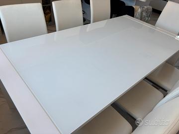 Vendo elegante tavolo da pranzo bianco lucido, design moderno e minimale, perfetto per ambienti contemporanei.