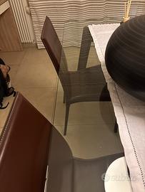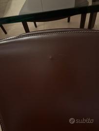 Tavolo con piano in cristallo e gambe in cuoio della Calligaris e 4 sedie in cuoio Calligaris.