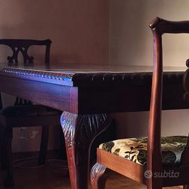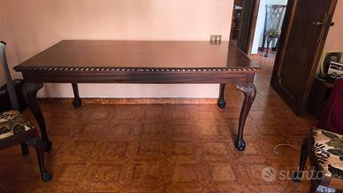 Tavolo da pranzo in mogano irlandese per 6 persone,prima metà XX secolo . Provenienza Irlanda in ottimo stato . 4 sedie più due poltrone a capotavola
