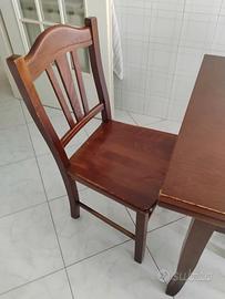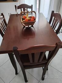 Tavolo allungabile in legno e 4 sedie legno. Misure tavolo chiuso 120x80. Si allunga ad estrazione di altri 40 cm a lato per diventare un tavolo di 2 MT.