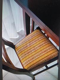 tavolo in legno in arte povera, cm 80x80 aperto a libro cm 160x80, 4 sedie con seduta in tessuto,ottime condizioni