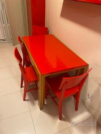 Tavolo e sedie da cucina in legno Colore rosso Ritiro e trasporto a carico dell’acquirente