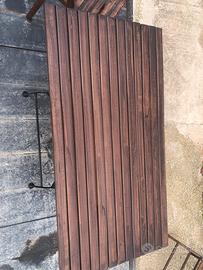 Vendo tavolo con 4 sedie in legno color noce da esterno.