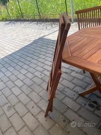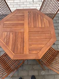 Bellissimo set da giardino in teak, composto da un tavolo ottagonale e quattro sedie pieghevoli. Ideale per esterni.
