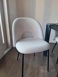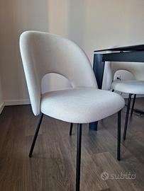 Sedie a poltroncina colore bianco avorio, in tessuto anti-macchia, impermeabile e lavabile.