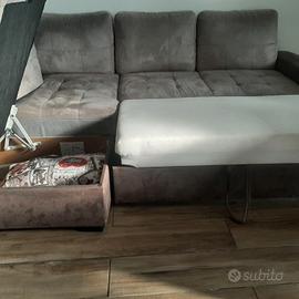 tavolo in legno 90x 150 allungabile se si vuole, con 4 sedie divano con contenitore e parte allungabile letto