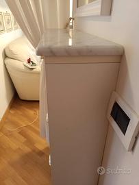 Tavolo e sedie Ikea, scarpiera con piano in marmo grigio chiaro e maniglia in ceramica . Scarpiera come nuova.Tavolo e sedie usurati.