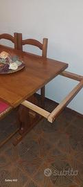 vendo tavolo in castagno 74*140 + prolunga da 25 con 4 sedie. Da ritirare in loco oppure spese a carico dell' acquirente