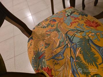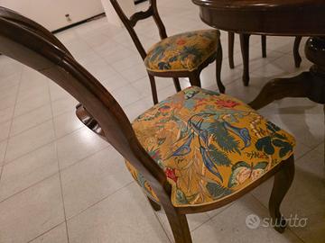 tavolo tondo allungabile, e 6 sedie poltroncine in legno foderate a nuovo.