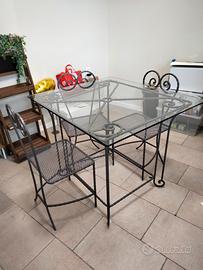 tavolo e sedie in ferro battuto fatto a mano sedia sono tre con vetro