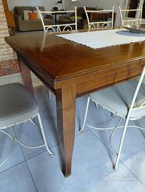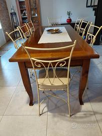 vendo tavolo in legno per 8 persone con 2 cassetti laterali e relative sedie in ferro battuto. il tutto anni 50 restaurato in modo conservativo con apposita vernice. affascinanti segni di usura. prezzo trattabile solo telefonicamente. ritiro e trasporto a carico del compratore. NO PERDITEMPO. grazie.