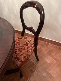 Tavolo e sedie in legno di mogano