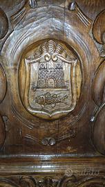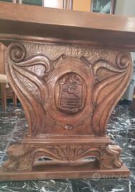Nelle gambe del tavolo sono presenti gli stemmi delle due famiglie dei proprietari.