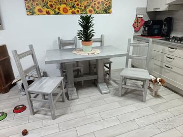 Vendo tavolo e 4 sedie in legno massello. Misure tavolo: 140x70 estendibile con due prolunghe comprese