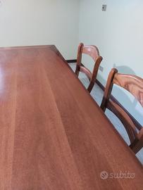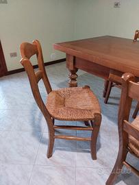 Si vende, in ottime condizioni, set composto da tavolo e quattro sedie in legno massello. Dimensioni del tavolo: 160 cm di lunghezza, 84 cm di larghezza. Ritiro e trasporto a carico dell'acquirente. Prezzo trattabile!