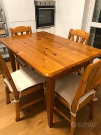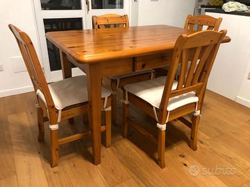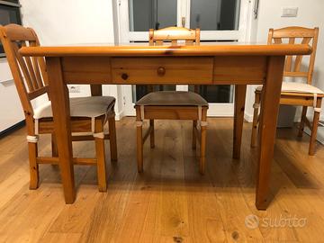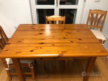 Tavolo in legno Pino di Svezia, ideale per cucina o sala da pranzo. Rettangolare. Dimensioni: 1,25 cm x 90 cm. Si vendono anche le sedie. Non è prodotto IKEA, e non è Mondo Convenienza. Si vende per ristrutturazione casa.
