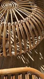 Vendo set composto da tavolo in legno con 4 sedie, più pouf e poltroncina in vimini.