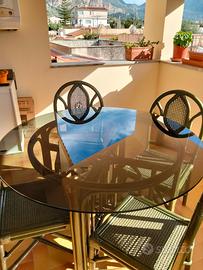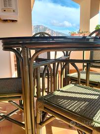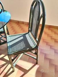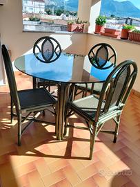 tavolo e 4 sedie in rattan colore verde bosco con base in vetro 15mm di diametro 120 colore fumo