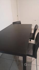 tavolo lunghezza 120cm allungabile fino a 160 cm per 90 cm di larghezza in wengè + 6 sedie in pelle