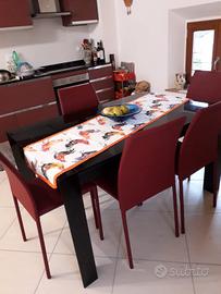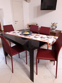 tavolo in cristallo allungabile 100x160 + n.6 sedie in ecopelle