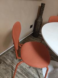 Vendo tavolo tondo bianco lucido, tipo Tulip, con gambo centrale. Le sedie sono 4, colore rosa antico come da foto. Il tavolo misura 90 cm di diametro.