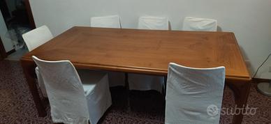 vendo tavolo in noce massello 200x100 modello boulevard e 6 sedie modello Lola in cuoio naturale complete con coprisedia in lino bianco