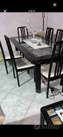 Vendo tavolo con vetro e sedie nero lucido. Altezza sedia: 1mt (schienale completo) Altezza seduta sedia 45cm Seduta quadrata 40x40 Tavolo: 1.80 x 90 RITIRO A DOMICILIO