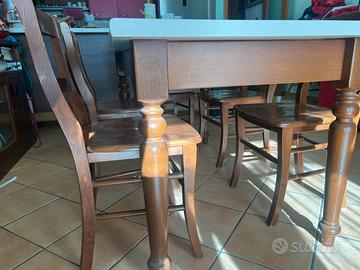 tavolo in legno massello 6 posti di 160x60 allungabile fino a 190cm ossia 8 posti compreso di 6 sedie abbinate in legno massello. Trasporto e smontaggio a carico dell’acquirente