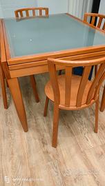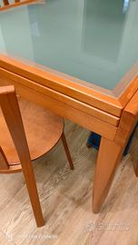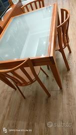 tavolo con ripiano in vetro e sedie color ciliegio. Tutto Calligaris