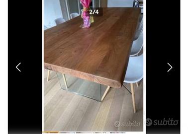 Tavolo in legno accacia con gambe di vetro moderno con sedie design moderne rosse pianoforte in buone condizione mi faccia un offerta