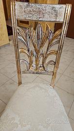 Vendesi tavolo in vetro con piede a forma di palma in oro e argento mecca, corredato da 4 sedie, marchio Andrea Fanfani.