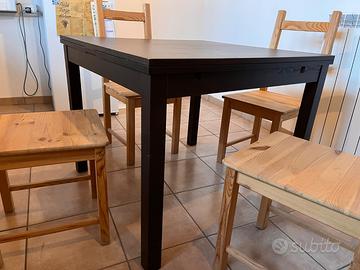 Vendo tavolo nero estendibile misure 90x90 chiuso , 90x170 aperto , altezza 74 cm . Completo di 4 sedie . Tutto in ottimo stato ,usato pochissimo . Provincia di Parma .