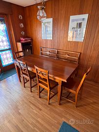 Tavolo, sedie e panca per 8 persone. Disponibile nel mese di MARZO 2026 (tra il 1 e il 30 del mese) per sgombero immobile. Ritiro a carico dell’acquirente. Prezzo euro 1.000