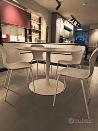Tavolo mod Planet bianco ottico diametro 120 + 4 sedie mod Ops bianco- Prezzo promo per ultimo articolo disponibile in pronta consegna.
