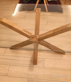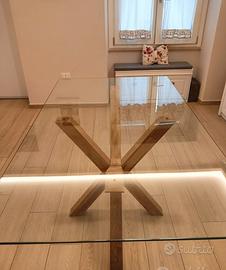 Vendo tavolo con piano in vetro temperato con gambe in rovere massello laccato per prolungarne maggiormente la durata, più quattro sedie ( no spedizione)