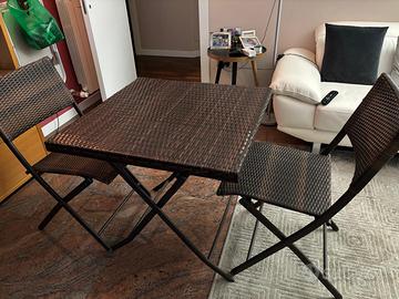 Tavolo e sedie pieghevoli in Rattan