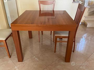 Tavolo in legno quadrato 1m X 1m allungabile a 2 m X 1m e quattro sedie con seduta imbottita coordinate
