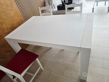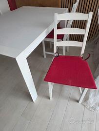 Tavolo bianco in legno 140 cm allungabile e 4 sedie in coordinato dotate di cuscini. Buone condizioni. Vendo per non utilizzo.