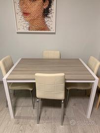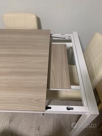 Tavolo e 4 sedie - bianco / quercia naturale. Domensioni tavolo: 130 L x 85 P x 73 H. Lunghezza estendibile + 50cm . Tavolo in perfette condizioni. Sedie un po usurate ( come da foto)
